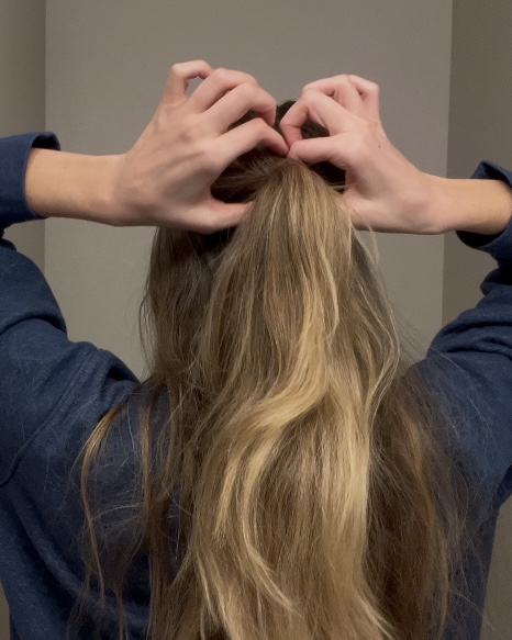 TIP: if you have thinner hair, just take the top section of hair and leave as much hair under the ponytail out as possible.