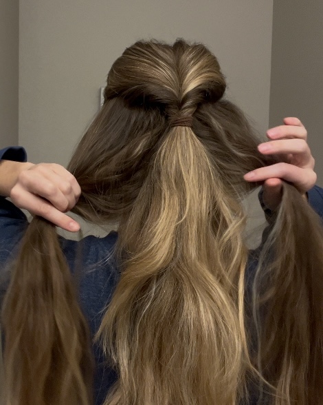 Put your hair into a half ponytail right at ear level.